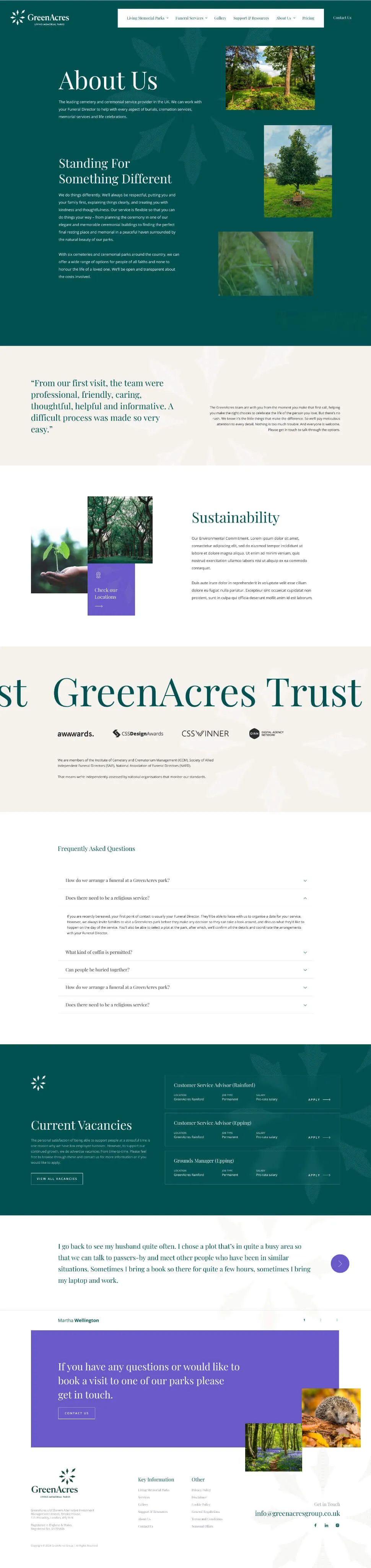 GreenAcres Group is the leading provider of natural burial and ceremonial services in the UK. We partnered with them in order to redesign and redevelop their website. The goal was to create a site design that effectively reflects the company’s ethos of compassion and sustainability while improving usability and accessibility.