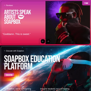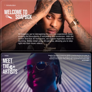 - Created a bold, immersive website that reflects Soapbox’s innovative 3D hologram and VR driven music experiences.
